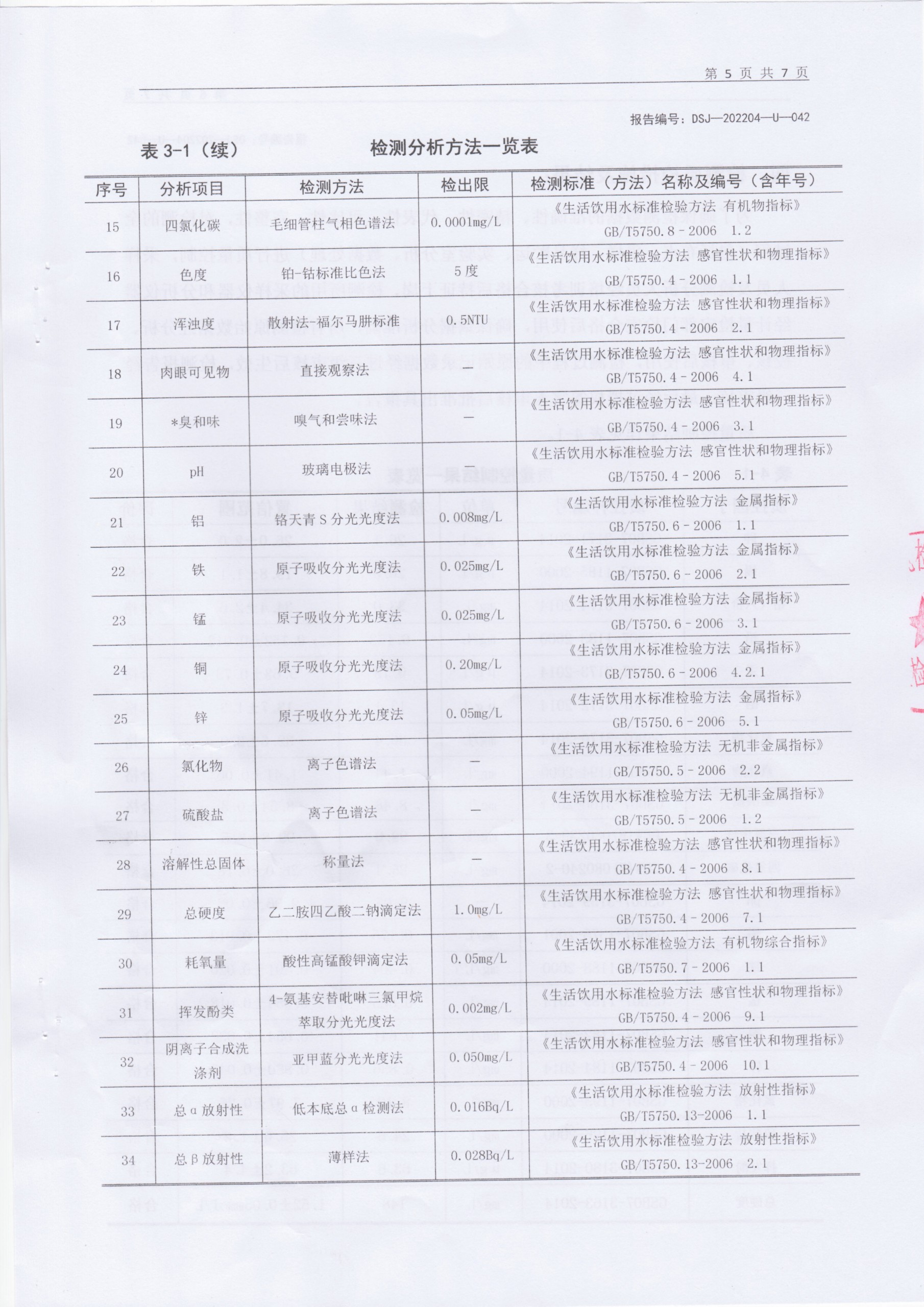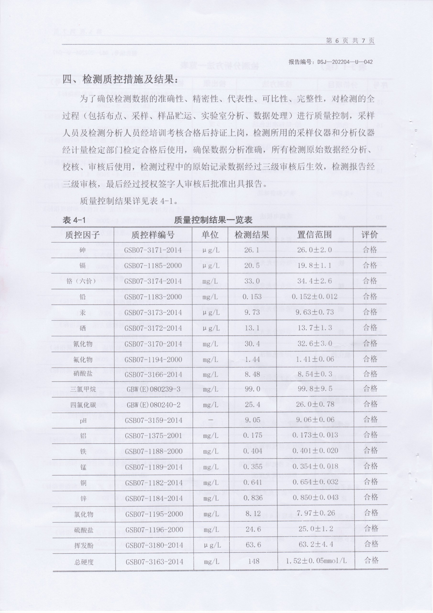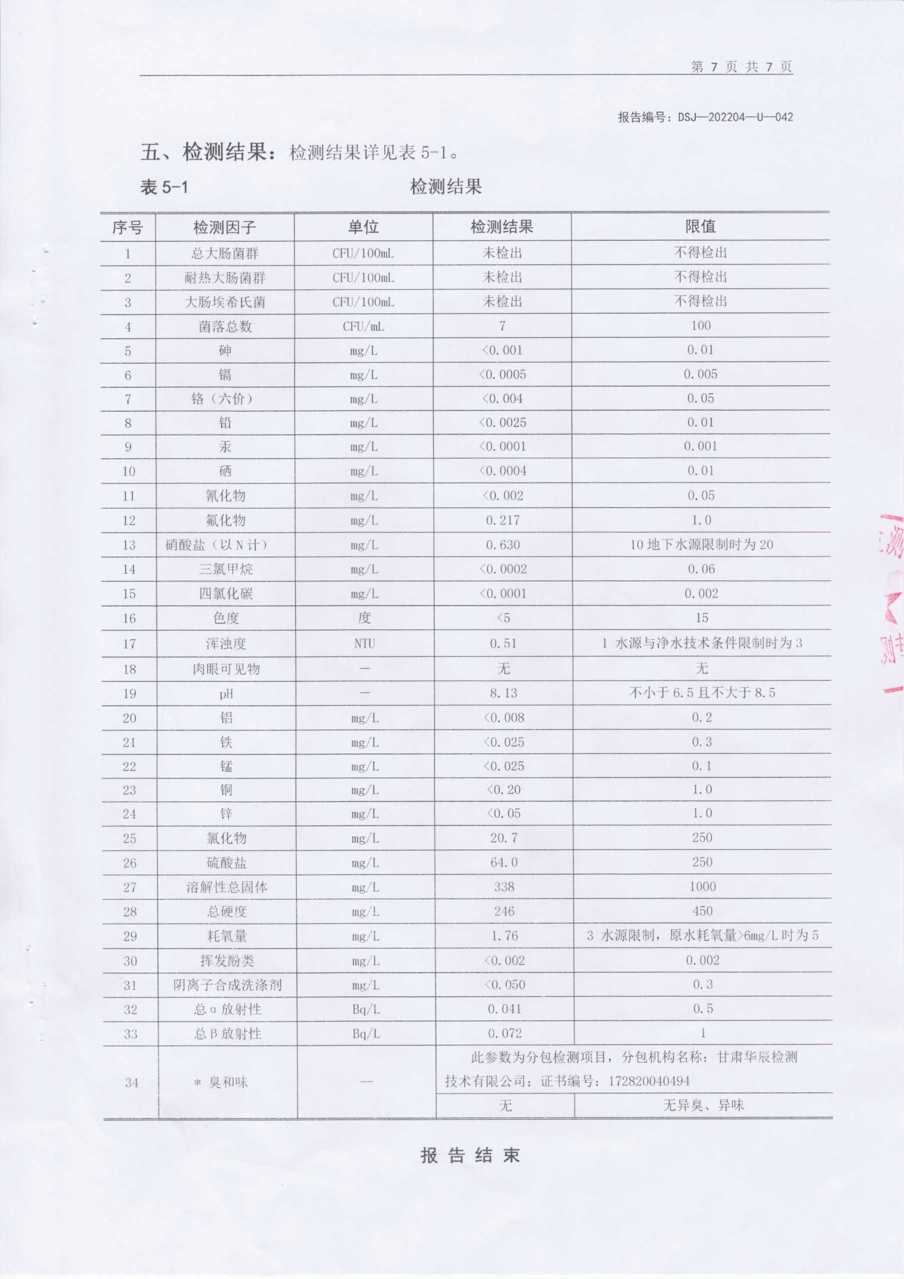 平川区潮鹏给排水管理有限公司2022年第一季度水质检测报告