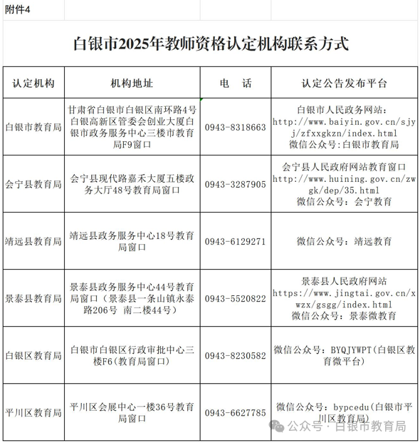 | 白银市2025年上半年中小学教师资格认定公告 | |