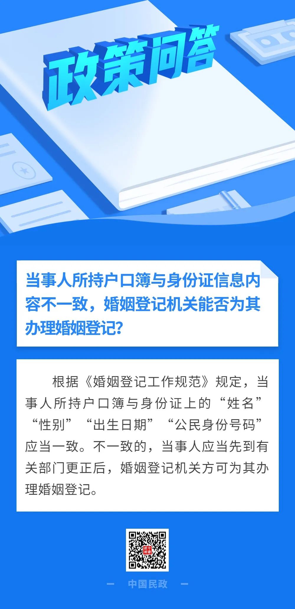 当事人所持户口簿与身份证信息内容不一致,婚姻登记机关能否为其办理婚姻登记?