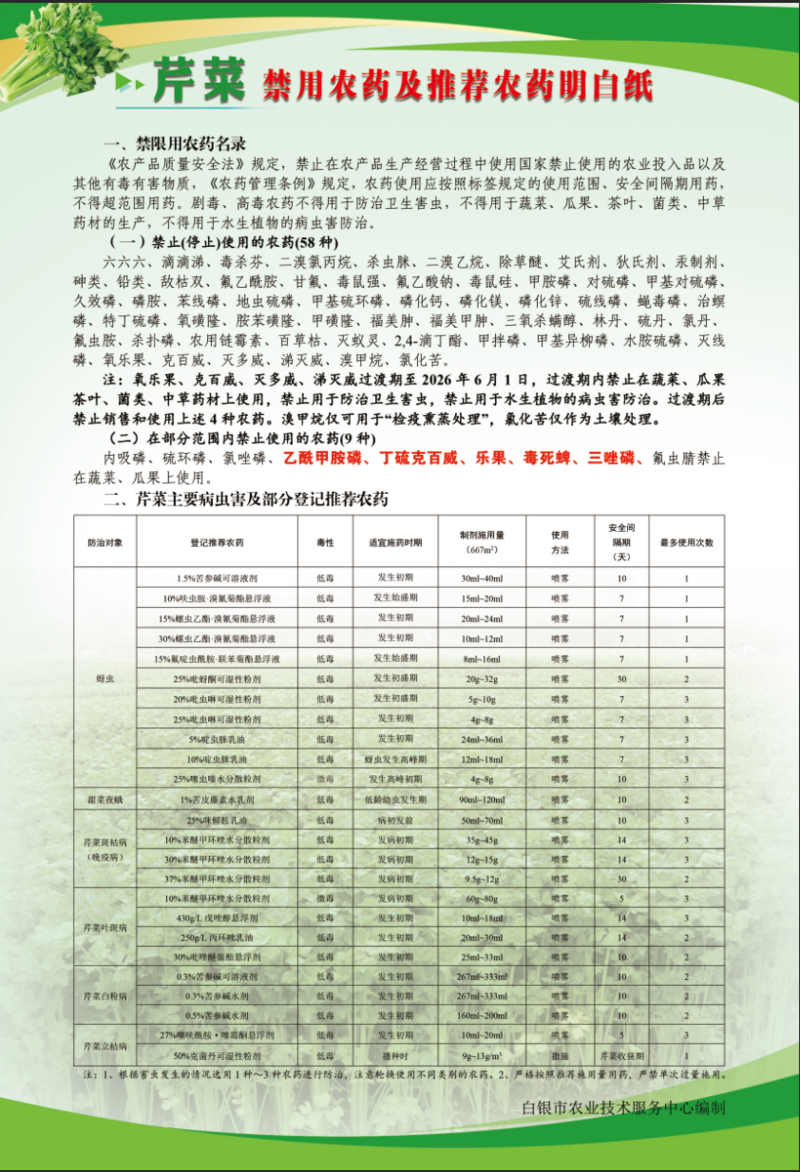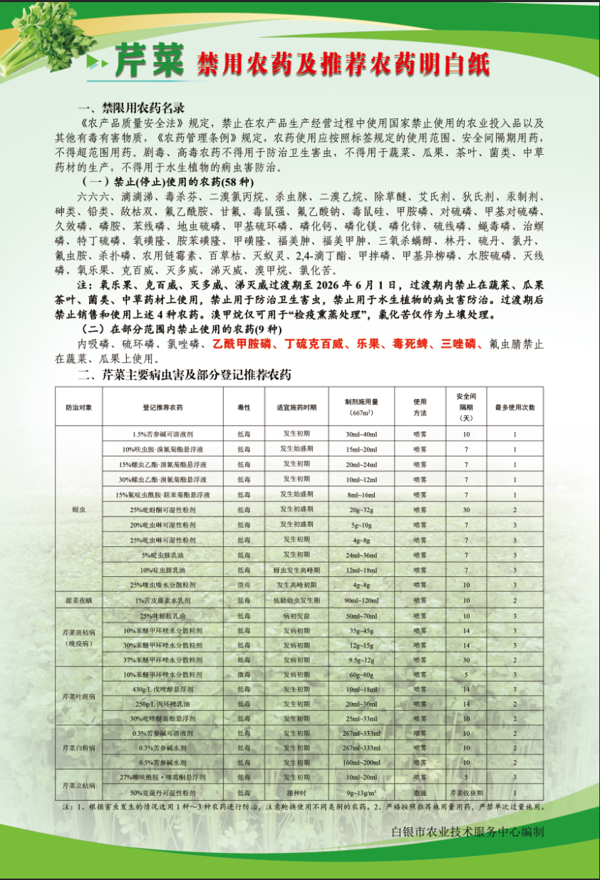 【农产品质量安全】芹菜禁用农药及推荐农药明白书