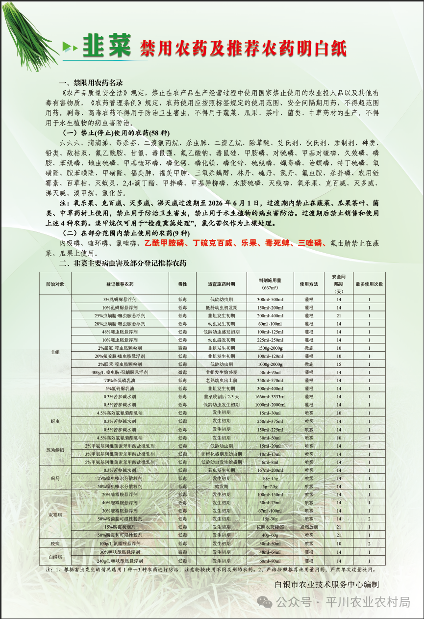 强农惠农 【农产品质量安全】韭菜禁用农药及推荐农药明白纸