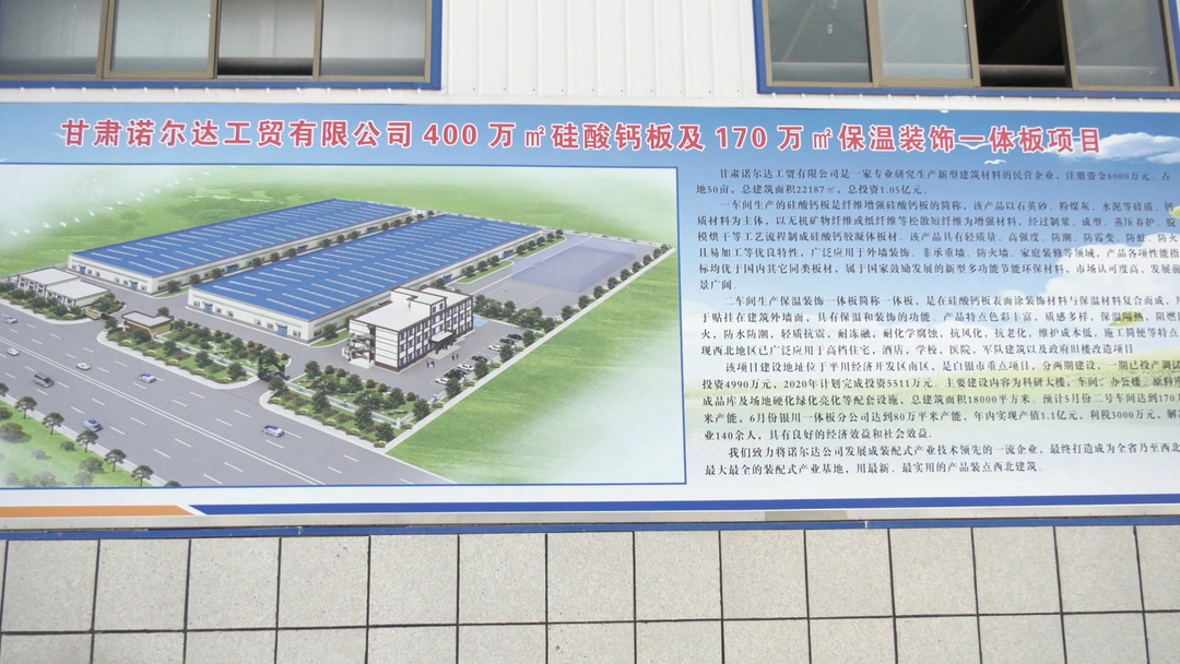 甘肃诺尔达工贸有限公司是平川区引进的新型建筑材料民营企业,在政府的帮助下,他们很快就入驻投产,所生产的硅酸钙板、保温装饰一体板属于国家鼓励发展的新型多功能节能环保材料,市场认可度高,发展前景广阔,解决就业140余人,具有良好的经济效益和社会效益。